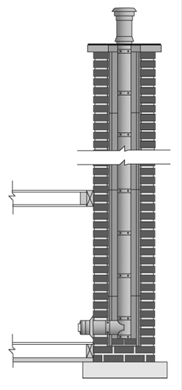 La gaine d’acier inoxydable TUBINOX s’installe à l’intérieur d’une cheminée de maçonnerie :